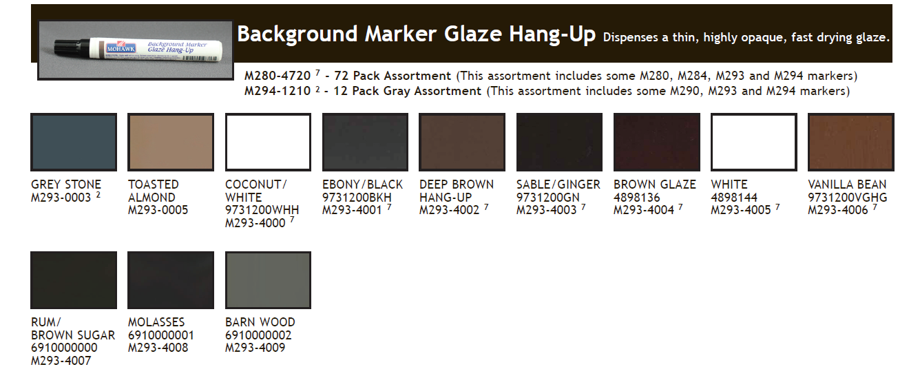 Mohawk’s Background Glaze Touch up marker dispenses a thin, highly opaque, fast drying glaze.