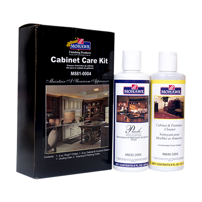 Place a small amount of Mohawk Cabinet & Furniture Cleaner on a steel wool pad soaked with water, or reduce liquid Cabinet & Furniture Cleaner 50/50 with water in a container, then simply dip pad into solution.