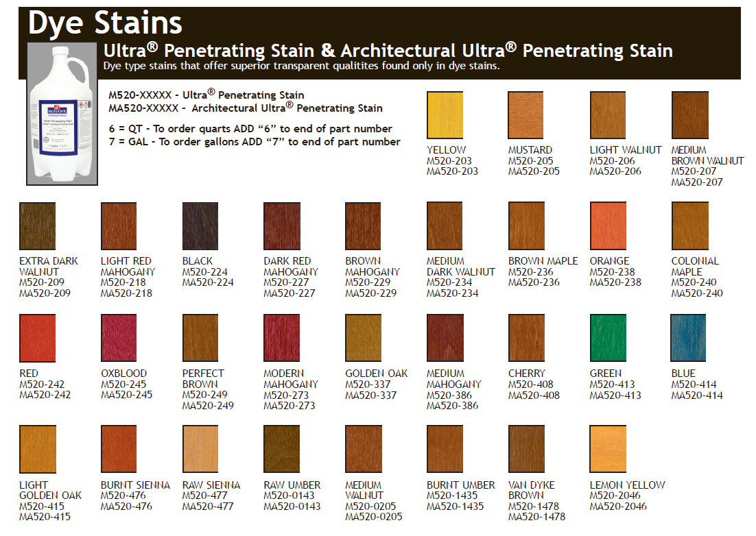 - Color intensity may be adjusted with M520-0001 Ultra Penetrating Stain Reducer.