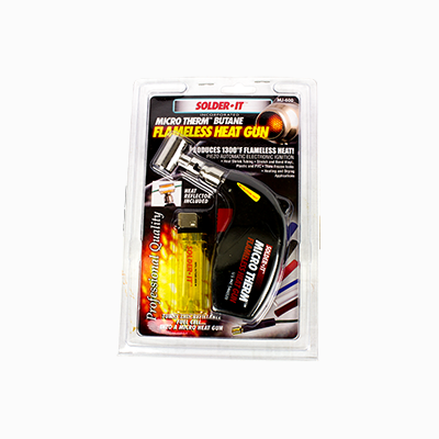 The Micro Therm™ Flameless Heat Gun is a hand held self-igniting flameless heat gun and is powered by a refillable fuel cell. The Micro Therm™ Flameless Heat Gun is the perfect heat source for the Quick Fill® Burn-In Stick.