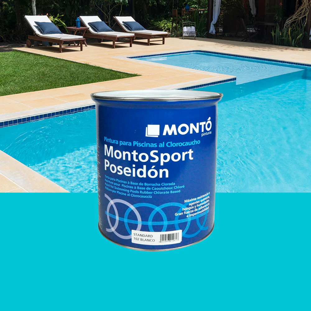 Montosport Piscinas Poseidon Plus is a satin paint for swimming pools, 100% chlorinated rubber, highly resistant to chemical agents, alkalinity and moisture. With an anti-mould and anti-algae effect. Protects against algae and mold. Excellent adhesion and fast drying (20 min). Works well with mortar, cement and metal.